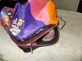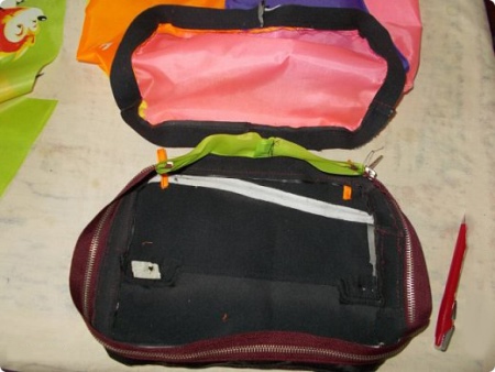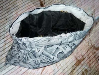 - Das Futter wird an die Basis genäht, dann wird die Tasche herausgezogen.