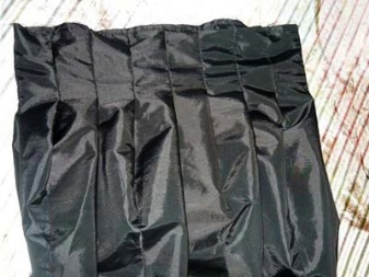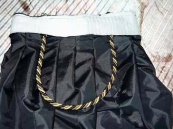 Nachdem Sie ein Tuch in einem Ring verbunden haben, bearbeiten Sie einen Boden. Dazu verdoppeln sie es und nähen es auf einer Schreibmaschine. Wenn es schwierig ist, es sofort zu tun, können Sie einfach die Unterseite nähen, die Vorder- und Rückseite verbinden und dann einen Saum mit einer geschlossenen Kante nähen. Der obere Teil wird auf die gewünschte Breite gesteckt und mit einer Naht im Saum genäht.
