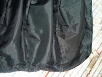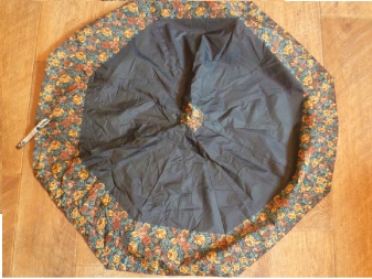 Am schwierigsten und zeitaufwändigsten ist es, die Regenschirmtextilien von der Basis zu trennen, sie manuell zu waschen und sie vorsichtig in separate Fragmente zu verteilen, ohne die Kanten zu brechen. Danach müssen Sie den gesamten Bereich der Teile bügeln.