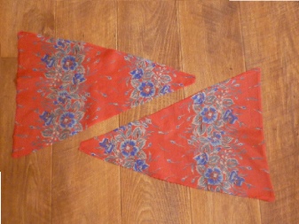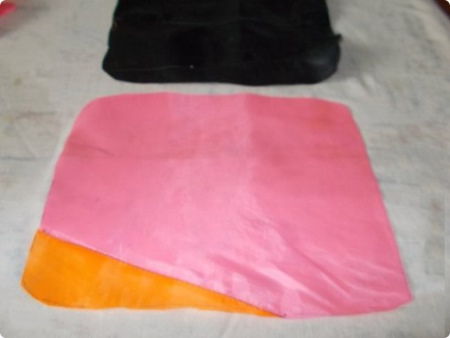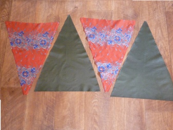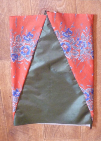 Das Futter wird entsprechend der Form des Beutels (wenn die Oberseite zusammengebaut ist) ausgeschnitten, jedoch mit einer großen Verlängerung: Die Art des Musters ist ein Trapez mit einem halbkreisförmigen Boden.