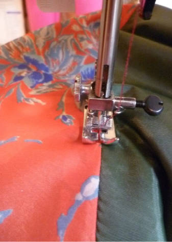 - Der Schliff wird oben auf den Beutel gesteckt und genäht, dann wird die Ziellinie gelegt.