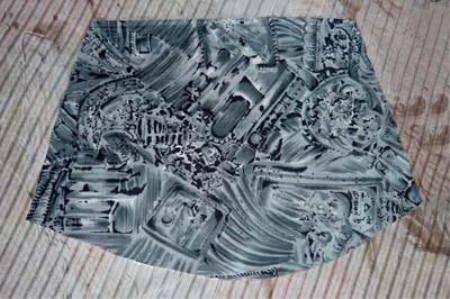 - auf dem erhaltenen Muster wird der Boden aus dem Grundgewebe herausgeschnitten;