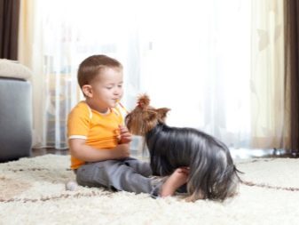 Der Yorkshire Terrier ist das sicherste Tier für Kinder, das ihnen niemals Schaden zufügen wird. Ab den ersten Tagen des Aufenthalts des Haustieres im Haus wird es zu einem universellen Favoriten, mit dem die Kinder den ganzen Tag über spielen, rennen und verschiedene Spaß haben können. Die Hauptaufgabe der Eltern ist es, den Kindern rechtzeitig zu erklären, dass der Hund trotz des lustigen Aussehens ein Lebewesen ist, das eine sorgfältige, fürsorgliche und aufmerksame Haltung erfordert.