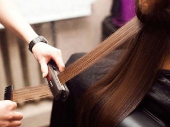 Nach wiederholter Verarbeitung mit einem Infraroteisen ist es möglich, zuvor geöffnete Haarflocken durch Versiegeln zu schließen. In diesem Stadium werden die Verwirrung der Haare, der Mangel an Glanz und die Sprödigkeit beseitigt.
