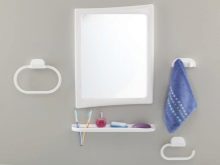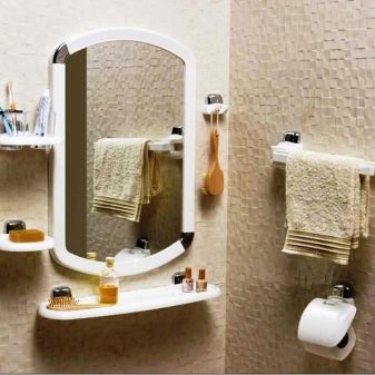Die Möbel und Accessoires tragen dazu bei, einen praktischen und attraktiven Raum für das Badezimmer zu schaffen. Separat ausgewählte Elemente werden nicht immer in Form, Farbe und Größe kombiniert. Es ist praktischer, ein Kit mit einem Spiegel zu kaufen. Produkte unterscheiden sich in Herstellungsmaterialien, Ausrüstung, Farben, dekorativen Elementen.