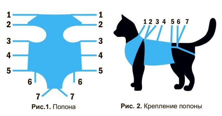 - Το υφαντό μέρος απαιτείται να είναι προσαρτημένο στην κοιλιά του κατοικίδιου ζώου και να φέρει κάτω από τα μπροστινά πόδια. Οι κορδέλες θα πρέπει προσεκτικά να φθάσουν στο πίσω μέρος της γάτας.