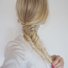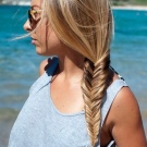 Τα κορίτσια που κατέχουν πανέμορφα παχιά μαλλιά πρέπει σίγουρα να φτιάξουν ένα ψάρι από την κορυφή του στέμματος, γιατί φαίνεται απίστευτο. Μπορείτε απλά να πλέξετε το πλεξούδα στη μέση του μήκους και να το στερεώσετε με μια ελαστική ταινία, θα γίνει πολύ ασυνήθιστο.