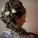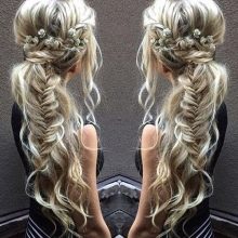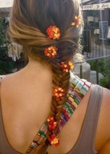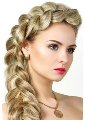 Μπορείτε να αισθανθείτε σαν μια πριγκίπισσα αν κάνετε ακριβώς μια μεγάλη πλεξίδα, η οποία στη συνέχεια διακοσμούν με λουλούδια. Ξεκινήστε να δημιουργείτε hairstyles από το ναό και να μετακινηθείτε σε όλο το μέτωπο, μετά από το αυτί και στο λαιμό.