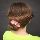 - Στερεώστε τα άκρα με λαστιχένιες ζώνες με λουλούδια που ταιριάζουν με τη σκιά μαλλιών σας, έτσι ώστε να μην ξεχωρίζουν και να μην αφαιρούν την προσοχή από το χτένισμα.