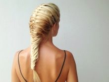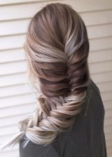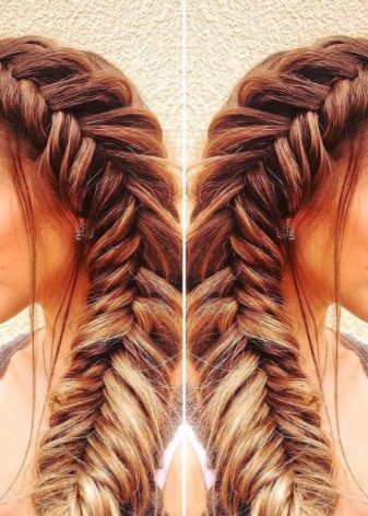 Με την παρουσία ενός λεπτού χτενίσματος, τα κορίτσια συνιστώνται να πλέκουν μια "ουρά των ψαριών" με ένα μικρό σωρό. Τα μαλλιά με επισημάνσεις ή χρωματισμούς είναι πολύ όμορφα, αφού η ύφανση σε ένα ευνοϊκό χρώμα καταδεικνύει την ένταση και τη χρωματική παλέτα βαφής.