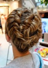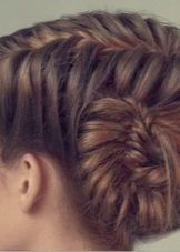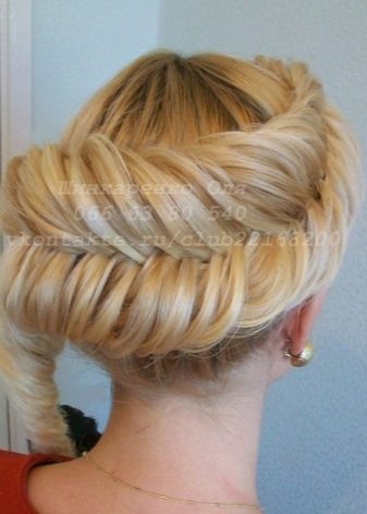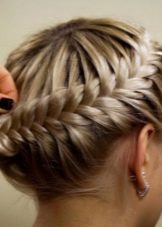 Από τις ληφθείσες πλεξίδες, το πλεξούδα πλένεται ξανά χρησιμοποιώντας την κλασσική μέθοδο. Ως αποτέλεσμα, η βάση του προκύπτοντος hairstyle μοιάζει με ένα ημικύκλιο. Αυτή η ύφανση είναι ιδανική για κορίτσια με χοντρές κυματιστές τρίχες.