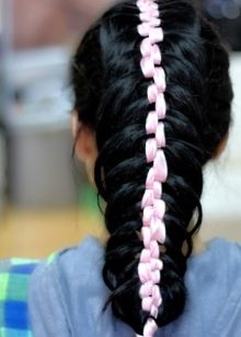 Σε οποιαδήποτε από τις προτεινόμενες επιλογές, μπορείτε να χρησιμοποιήσετε κορδέλες διαφόρων πάχους, ανάλογα με το χρώμα και τη θέση των οποίων θα εξαρτηθεί από το αν ένα κορίτσι ή μια πιο αθλητική δημιουργεί ένα ρομαντικό χτένισμα.