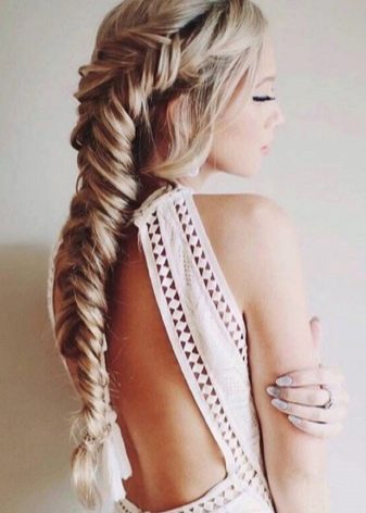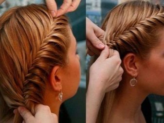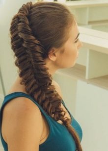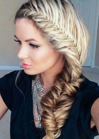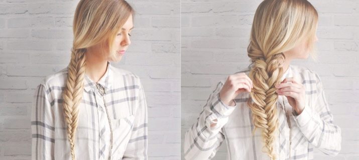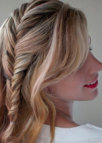 Όσο πιο ελεύθερα είναι το ψάρι, τόσο πιο ρομαντικό και ενδιαφέρουσα το στυλ γίνεται. Αυτά τα πλεξούδες πρέπει να υφαίνουν πιο ελεύθερα από τα παραδοσιακά, μπορείτε να επιλέξετε το μέγεθος των κλώνων κατά την κρίση σας. Εάν θέλετε να δημιουργήσετε ύφανση στο πλάι, τότε μην σηκώσετε τα μαλλιά σας πάρα πολύ.
