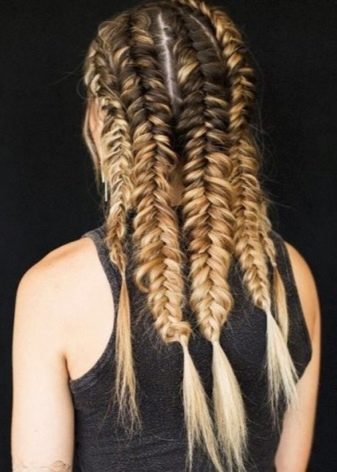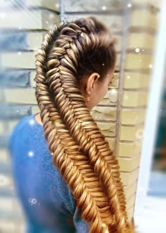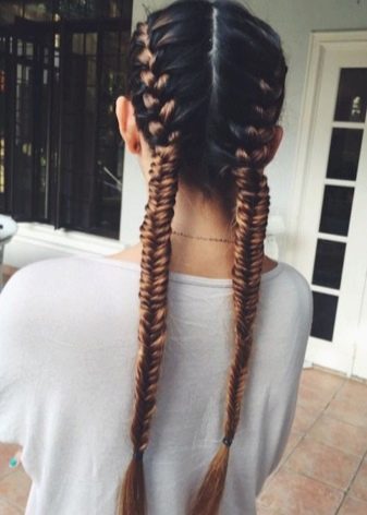 Αυτή η έκδοση του hairstyle μπορεί δικαίως να ονομαστεί καθολική, αφού υπάρχει ένας τεράστιος αριθμός πιθανών επιλογών για μετασχηματισμό. Μερικοί δάσκαλοι προτιμούν να πλέκουν μόνο μία "ουρά ψαριών", άλλοι χρησιμοποιούν δύο από αυτές στο σχεδιασμό, και στη συνέχεια να τις συνδέουν σε μια ενιαία δομή στη μέση.