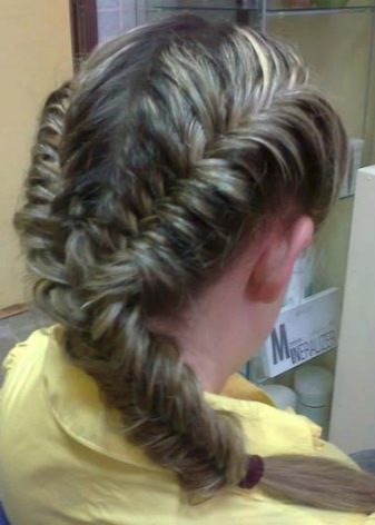 Αλλά παρά τον τεράστιο αριθμό των πλεονεκτημάτων, ένας αρχάριος δεν μπορεί να πλέκει αυτό το pigtail μόνο του, καθώς τα χέρια του κουράζονται πάρα πολύ. Η αρχή μιας τέτοιας πλεξούδας μπορεί να είναι διαφορετική, μερικές να την κάνουν από την ουρά, άλλες από την πλευρά του ναού ή από το μέτωπο σε όλο το κεφάλι. Πάντα αρχίζουν να υφαίνονται με τρεις σκέλη, μόνο μετά την αλλαγή στην "ουρά των ψαριών".