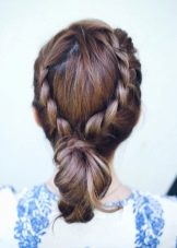 Το hairstyle ταιριάζει απόλυτα στο στυλ του γραφείου, διότι δίνει την εικόνα της σοβαρότητας και της αποτελεσματικότητας. Τα μαλλιά στο κεφάλι χωρίζονται σε δύο μισά και πλέκονται από αυτά με ένα σφιχτό κόμπο. Η κλειδαριά που παραμένει από το κάτω μέρος πρέπει να ανυψώνεται έτσι ώστε να περνάει γύρω από τη βάση και η κλειδαριά κορυφής να την περιστρέφει από την πλάτη. Αποδεικνύεται ένα εντυπωσιακό καλάθι, το οποίο μπορεί μόνο να στερεωθεί με καρφιά και να πασπαλιστεί με βερνίκι.