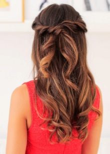 Όχι λιγότερο κομψή εμφάνιση και πολλά άλλα hairstyles σε μακριές μπούκλες.