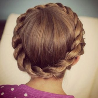 Πάντα φαίνεται κομψό καλάθι με μακριά μαλλιά. Πρώτα πρέπει να κάνετε μια κατακόρυφο χωρισμό, μετά την οποία κάθε μισό τρίχες πλέκονται σε μια γαλλική πλεξούδα προς την κατεύθυνση από την ινιακή προς την μπροστινή πλευρά.Οι άκρες ύφανσης στερεώνονται με ελαστικές ταινίες και οι πλεξίδες που λαμβάνονται ανυψώνονται, τυλίγονται γύρω από το κεφάλι και στερεώνονται με μικρές φουρκέτες.
