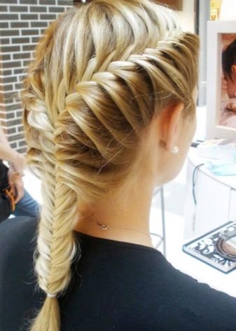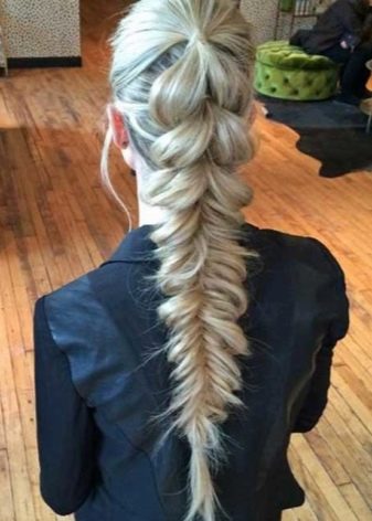Η ύφανση πραγματοποιείται στο τέλος και από κάτω η τρίχα ενισχύεται με μια ελαστική ταινία, κατά προτίμηση σιλικόνη, τα άκρα της μπούκλας. Το ψάρι Ready είναι επιπροσθέτως σταθεροποιημένο με βερνίκι, έτσι ώστε το απρόσεκτο βλέμμα να μην ξεγελάει, και αν προσαρμόσετε, τότε αυτό το χτένισμα θα διαρκέσει μόνο λίγα λεπτά, και μπορείτε να το κάνετε ακόμη και χωρίς βοηθούς.