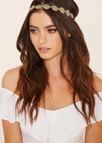 - Οι χαλαρές μπούκλες μπορούν να διακοσμηθούν με πρόσθετα εξαρτήματα, για παράδειγμα, ένα χείλος, κορδέλα ή μια εξαιρετική αλυσίδα.