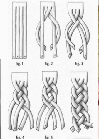 - Το τέταρτο τοποθετείται κάτω από το πρώτο - έτσι, εμφανίζεται στο κέντρο της προκύπτουσας ύφανσης.