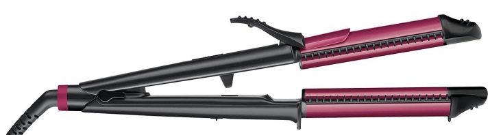Αυτή η συσκευή σας επιτρέπει να κάνετε 3 τύπους styling: μπούκλες αιολικής ενέργειας, ευθυγραμμίστε άτακτα μπούκλες και κάντε κυματοειδείς αυλακώσεις (μοιάζει σαν εσείς απλά πλεξίδες). Λόγω του γεγονότος ότι και τα 3 ακροφύσια είναι ενσωματωμένα (αλλαγή με κύλιση του τροχού), ο στυλός καταλαμβάνει λίγο χώρο.