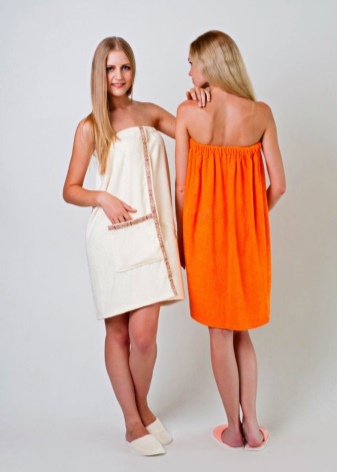 The length of the bath dresses are also different: above the knee, to the knee and to the middle of the lower leg. For a dry bath (sauna), it is recommended to choose a pareo more authentic, and for a wet one, on the contrary - shorter.
