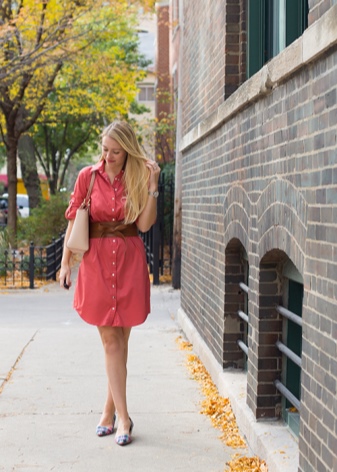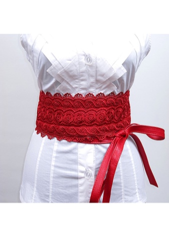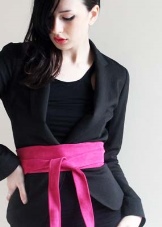 The belt looks very feminine and elegant on dresses. Against the background of such a product, extra pounds and ugly sections of the figure can easily hide. But choosing a sash, it is worth giving preference to contrasting options that will not merge with the dress. For example, a classic outfit in black can be complemented by a bright item of red, pink or purple.