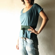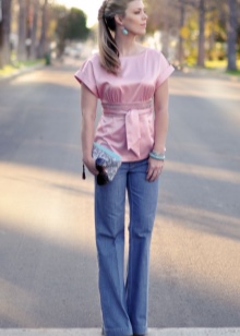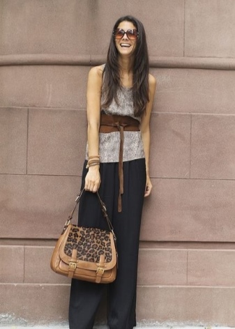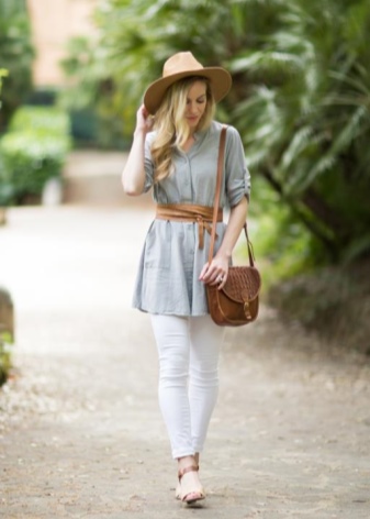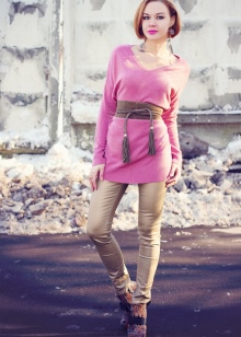 Women's belt looks great with elongated tunics or loose-fitting T-shirts. Such clothes do not emphasize the figure, but with the help of a sash this can be fixed.