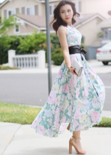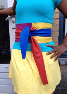 - You can make several turns around the waist. Before this, we place the wide sash detail in front and cross its ends on the back. After that, they need to again skip forward and form a nodule. A similar method allows the ends of the belt to fall freely from above.