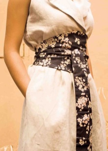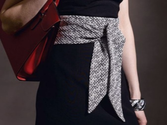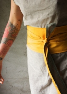 The stylish belt is a long and wide strip of leather or other durable material with two ends. There are no buckles in it, since they simply are not needed. The sash can be tied at the waist in all possible ways and create beautiful bows or knots. With the help of such a little thing you can constantly update and change your images.