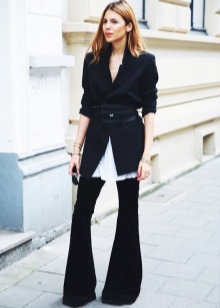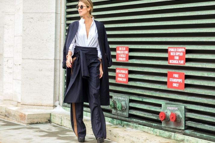 If you like to wear casual clothes, then there is great news for you: wide belt harmoniously looks in such sets. Just pick up simple skinny jeans or black leggings, an elongated shirt, top or blouse and dilute this simple ensemble with a contrasting belt with a small bow or no bow at all.