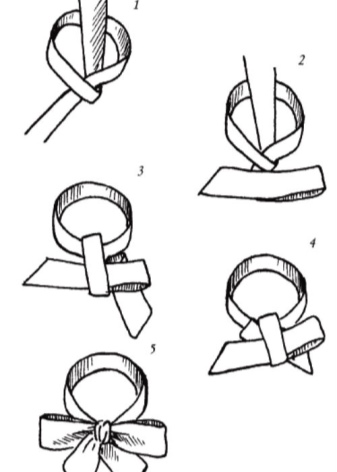 - The sash in the form of a half-bow looks spectacular. To do this, you need to form a regular knot, and then tie one loop and raise it up.
