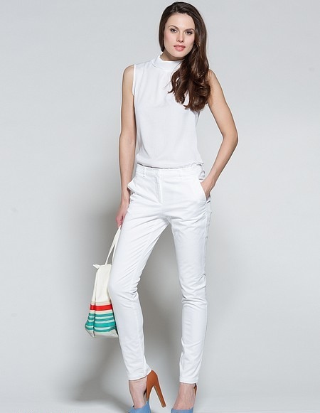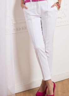 To choose a belt for white pants should be based on the model of the pants themselves. If the product is required, only for their fixation on the hips or waist, and it will be covered with the edges of a blouse or shirt, you can limit yourself to a monophonic version of medium width.
