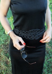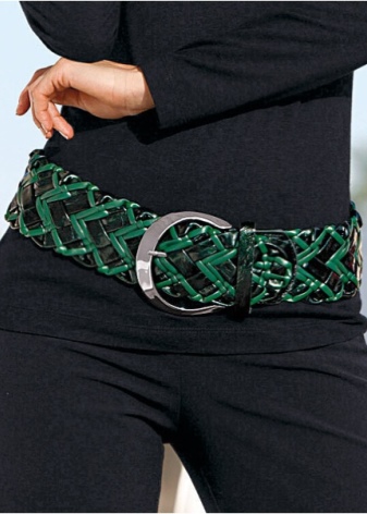 The wicker belt looks beautiful, which is most often made of soft artificial leather, suede or some soft fabrics. Leather products are quite functional, but fabric models will serve more as an addition to the image than as a functional part of it.
