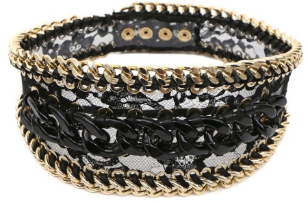 The first place is rightfully occupied by an unusual belt model with lace and decorative chains. Such a model will most successfully look on thin girls, combined with voluminous cotton clothing in light colors.