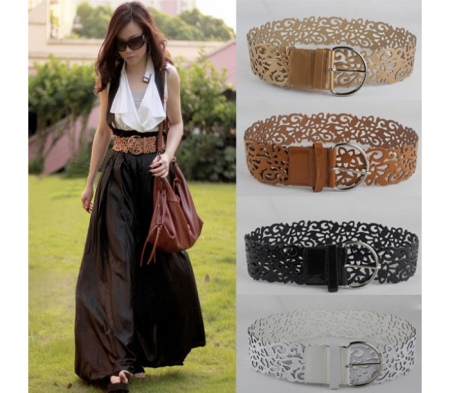 Belts made of various materials can dilute even the most boring and simple set of clothes. Especially attractive to the young ladies look wide products. They can safely be called universal.