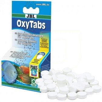 - Oxygen tablets. This is another solution that allows as soon as possible to raise the level of oxygen in an artificial reservoir without any electricity. Unlike hydrogen peroxide, this tool is considered not only a method of resuscitation, but also an option to solve the problem when it is not possible to use an electric device, for example, when transporting fish somewhere. Typically, one tablet contains 30 mg of oxygen. Given that the norm is 5-6 mg per liter, one tablet is enough for 5-6 liters of water, in which there is no useful gas at all.