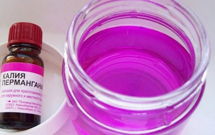 - prepare a solution of potassium permanganate (the color should be dark, saturated) and pour it into a tank of water;