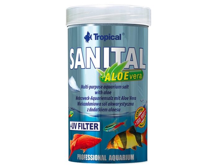 - The addition of a small amount of salt to water significantly inhibits the growth and development of algae and microorganisms. If you or your acquaintances have experience maintaining a saltwater aquarium, then you may have noticed that in salt water the walls and bottom of the aquarium are never overgrown with bloom and algae. For a freshwater aquarium, the dosage of sea or ordinary table salt in order to get rid of blooming water is 1 g per liter of content.