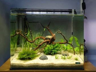Organics is, of course, driftwood and tree roots. They imitate the coastal sector of water bodies. Minerals and rocks are, first of all, stones that really often appear in tanks. Mosses are often grown on stones, which also adorns the container.