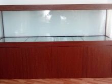To avoid injuries to the pet, an aquarium background is placed on the glass, and only the opening wall is kept transparent.