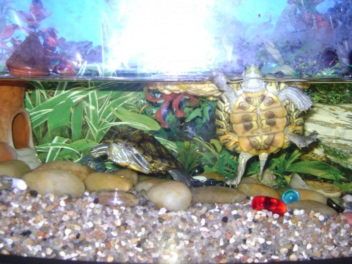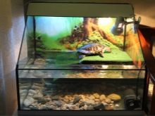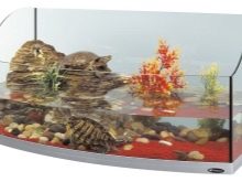 For the red-eared turtle, the aquarium is also selected individually according to its size: reptiles 10 cm long will require a capacity of 40 l, 20 cm - from 80 to 100 l, and for keeping 2 pets - an aquarium of 120-150 l.