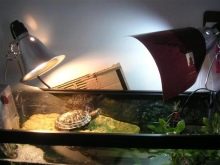 An incandescent lamp (up to 60 W) should be installed above the shore, under the light of which the turtle will bask. You can use a special lamp for a terrarium with a reflector. The lamp should be placed at such a distance that the reptile does not reach it and water splashes do not reach.