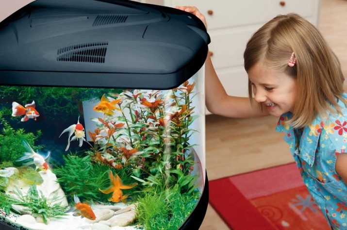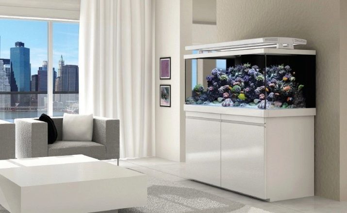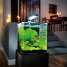 If we talk about accessories, it often happens that bedside tables, as well as covers with built-in lamps, are supplied with the container. Such a solution would be good if there is very little space for mounting the aquarium.