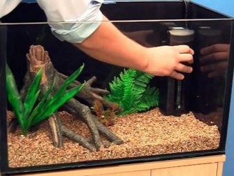 Before use, they must be collected if they consist of several parts, and washed with running water, and then dried. And only then they can be lowered into a container with fish.