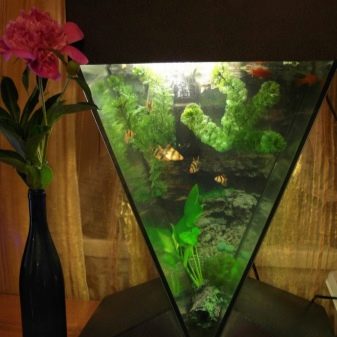 And depending on the form, certain installation features appear. For example, triangular aquariums are only closed, and prismatic can only be installed on the floor.
