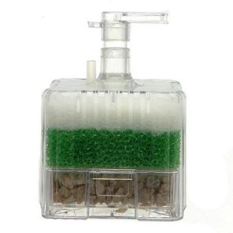Not so long ago, new generation airlift filters appeared in specialized stores, they have a different structure, but work in the same way. The filter is a small plastic container, in it various filtration materials are arranged in several layers. Most often, these containers are made of angular type, which saves space as much as possible, which means it is suitable for small aquariums.The principle of operation is the same, but the presence of several filtration materials allows the air-lift filter to work as a full-fledged biological one.