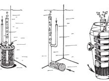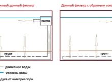 The bottom filter works by using the right soil. Water passes through a sand or similar filter, thereby undergoing rough cleaning. For the manufacture of the device requires a pump, conventional tubes and tubes with holes, as well as a compressor. The manufacturing process is as follows: