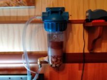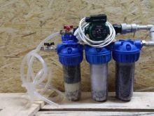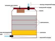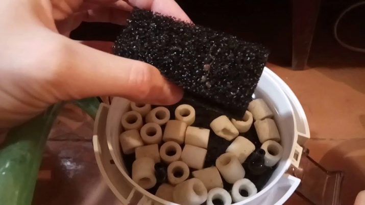 - further, a sponge is placed at the bottom, which will be engaged in rough cleaning of the liquid; directly on it is a material that promotes fine purification of water - ordinary cotton wool or materials for biological filtration;